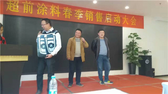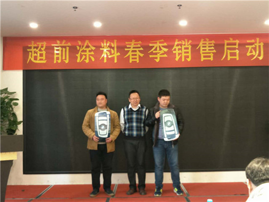 在過去的一年里,超前涂料里的每一位業(yè)務(wù)家人,就像一只只雄鷹,搏擊風(fēng)雨,翱翔蒼穹,創(chuàng)造佳績,跨越了一座座難以逾越的巔峰,在時(shí)間的長河里留下一個(gè)個(gè)美麗的剪影。在公司閻總的關(guān)心和領(lǐng)導(dǎo)下,在各部門的大力支持下,通過全體業(yè)務(wù)家人的共同努力,公司業(yè)務(wù)規(guī)模獲得了輝煌的發(fā)展。今天,在這啟動大會上閻運(yùn)鋒閻總親自給四位優(yōu)秀業(yè)務(wù)家人送出了四輛寶馬作為獎勵。